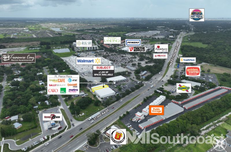 This unit in Fort Pierce Plaza offers 1,200 SF of flexible former salon space within a high-visibility plaza anchored by national retailers. As an outparcel to a Walmart Supercenter, the property benefits from steady traffic and strong exposure along one of Fort Pierces busiest corridors.