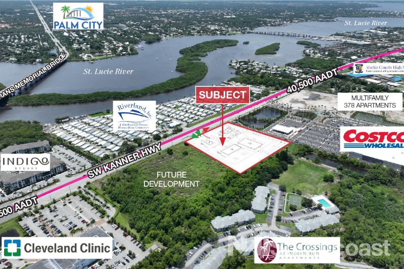 This high-visibility site is located directly along South Kanner Highway in Stuart, within one of the most rapidly growing areas of Martin County. Positioned immediately adjacent to the newly opened Costco, the property benefits from strong regional draw, pulling customers not only from Martin County but also neighboring St. Lucie and Palm Beach Counties. The Costco site is also set to include 378 new apartment units, further enhancing the residential density and customer base in the immediate area.