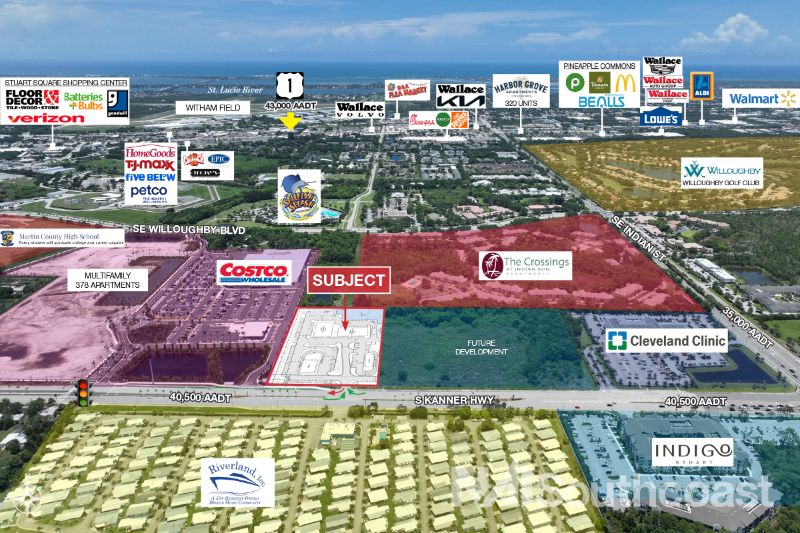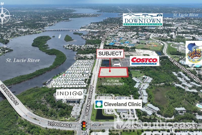 The property is ideally situated near the intersection of South Kanner Highway and Indian Street, just east of the St. Lucie River. It offers seamless access to US-1, I-95, and Floridas Turnpike, with Kanner Highway now surpassing US-1 in local traffic volume and becoming the dominant north-south retail corridor in the market. This section of Stuart is experiencing rapid growth, fueled by residential and commercial development.